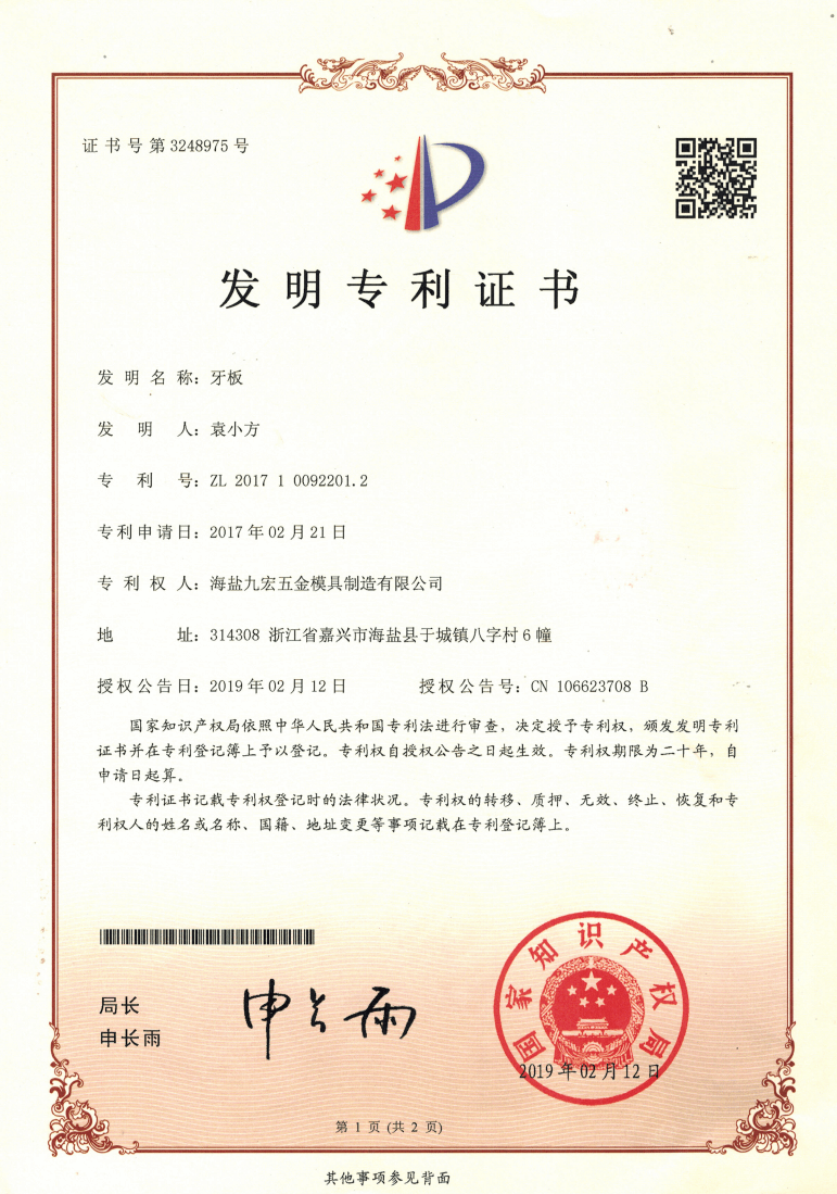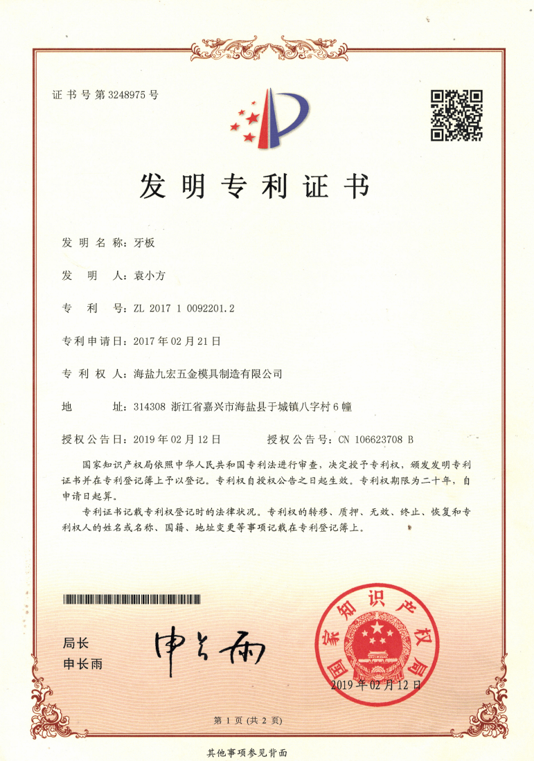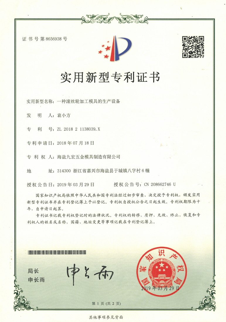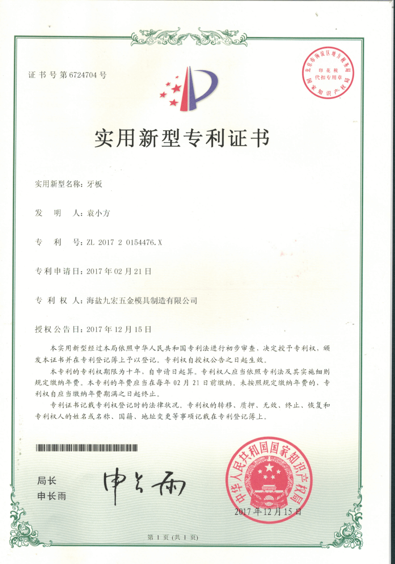 海盐九宏模具科技有限公司成立于2007年,位于杭州湾跨海大桥北岸——长三角经济圈内的海盐县境内,是一家专业的牙板制造企业。公司通过ISO9001质量管理体系认证,坚持科学的管理与运作,致力于产品的研究与技术的提升,对于产品制造的每一个细节都加以严格探究与控制,为客户提供更加精细的服务,满足用户的各种需求。生产的搓丝板吸取了欧美及日本搓丝板的优点与长处,科学合理配置各部尺寸,经过精心制作,严格的检测,采用高强度耐磨合金材料,真空热处理,使产品完全能保证螺丝尺寸的高速耐用。我们不仅能为客户提供各种不...